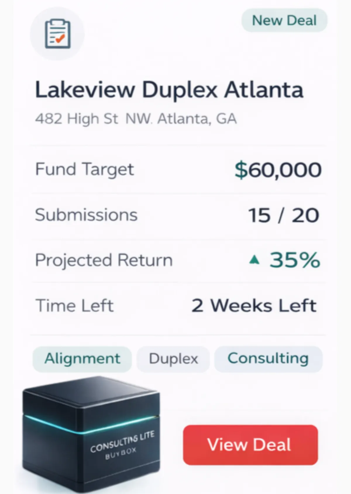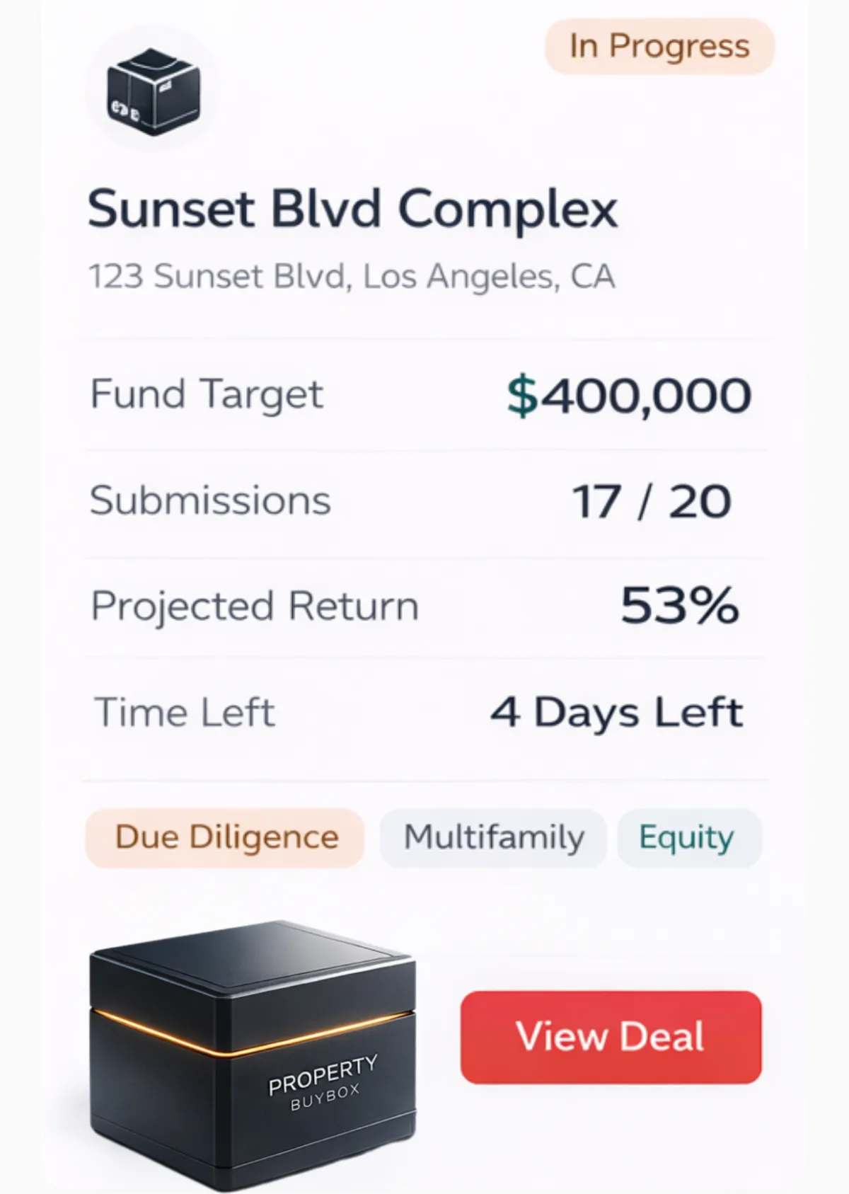 The Property BuyBox is a structured environment where property opportunities are organized, reviewed, and positioned for strategic collaboration.
